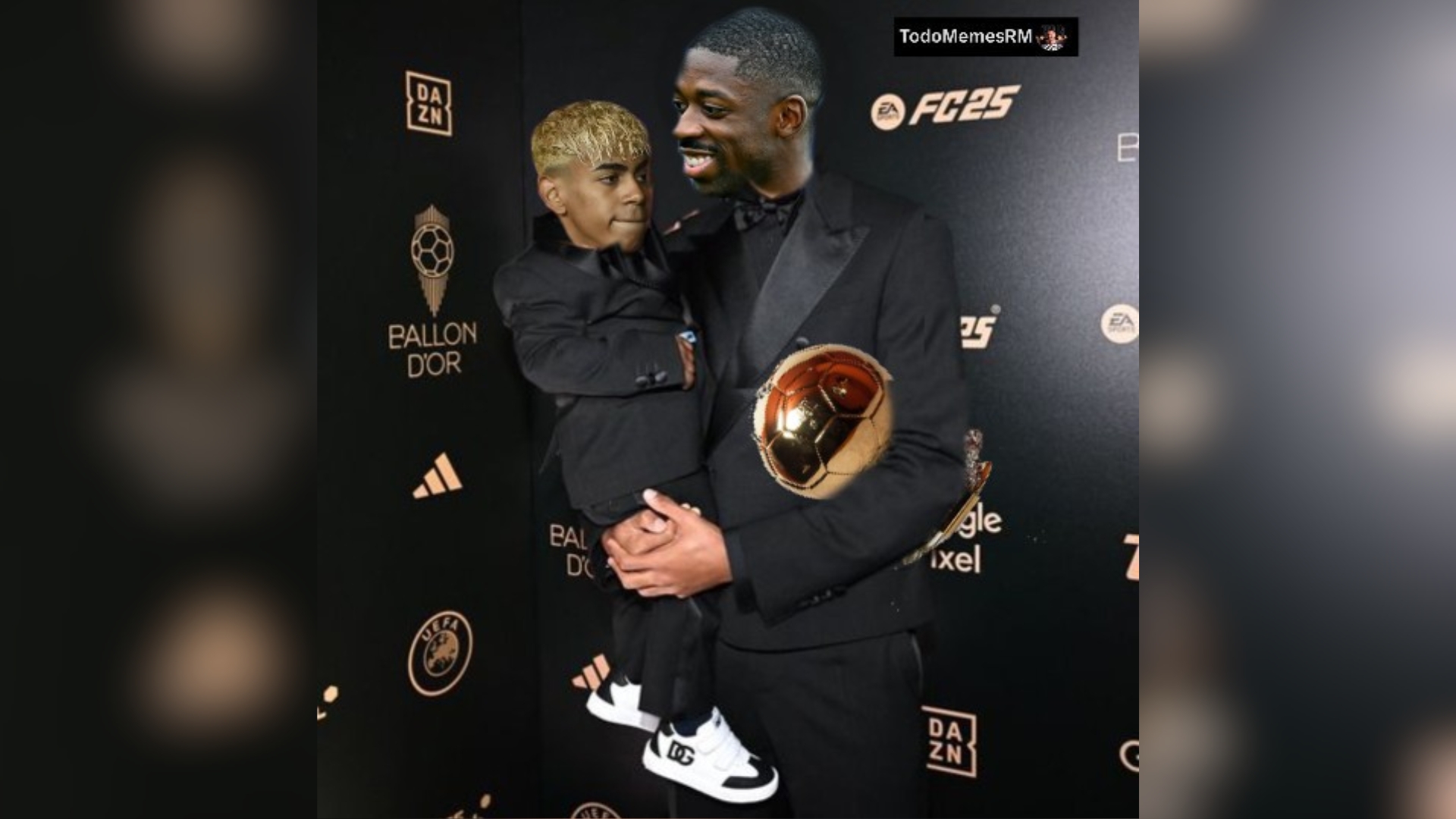 Dembelé con el Balón de Oro debajo del brazo y con Lamine Yamal como "su hijo".