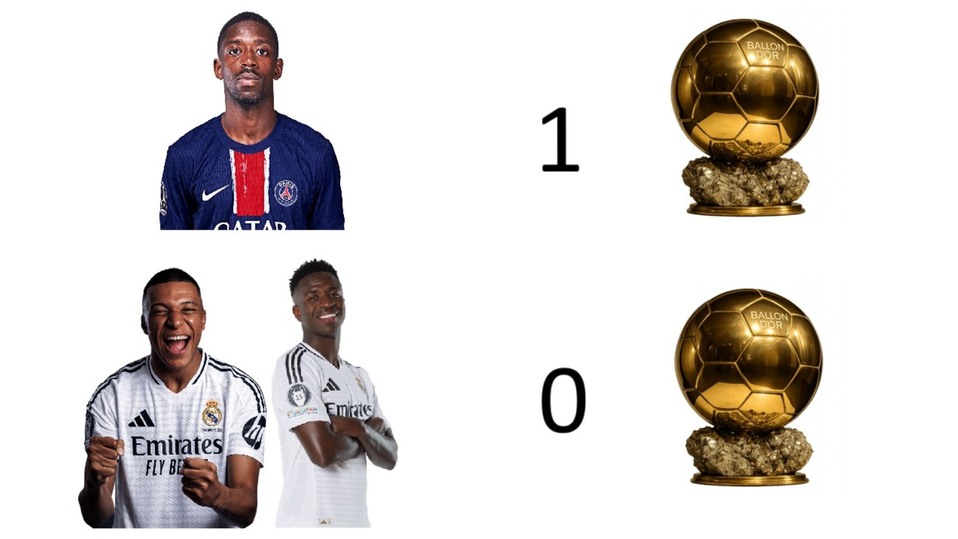 Dembélé, con el Balón de Oro logrado, supera a la unión Mbappé y Vinícius Jr, que no tienen ningún galardón.