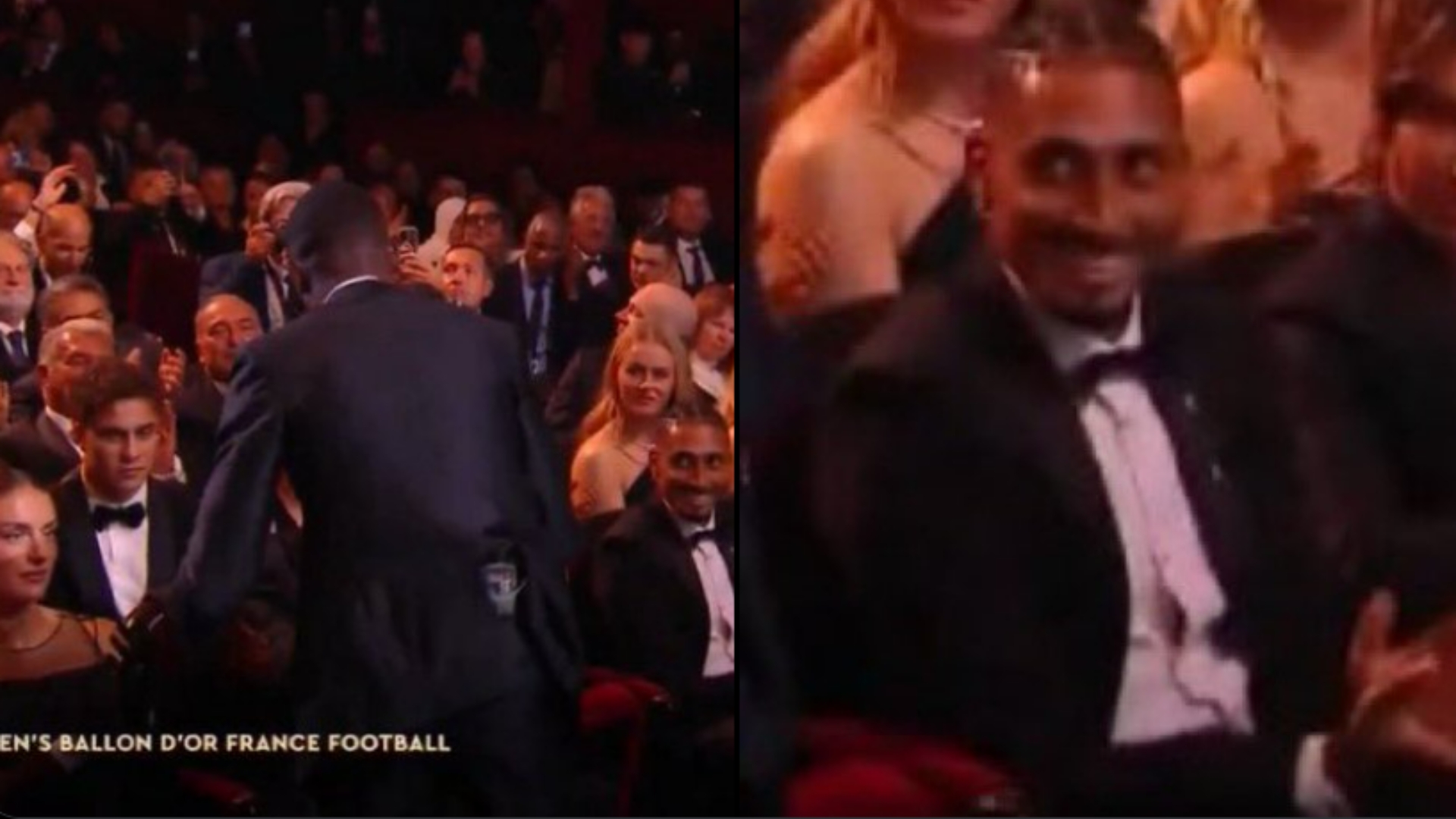 La reacción de alegría de Raphinha al recibir Dembélé el Balón de Oro.