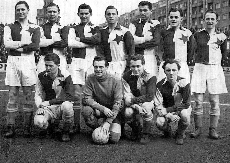 Y allí, efectivamente, va a destacar, en el SK Slavia de Praga, el club blanquirrojo de la capital de la flamante nación, con una gran estrella carmesí en el pecho. Pero los primeros años 40 eran tiempos muy difíciles y duros para la mayor parte de Europa, y un día Hanke y sus compañeros tuvieron que cambiar el balón de cuero por las armas de fuego. Finalizaba la contienda, con los soviéticos muy cerca y los maltrechos ejércitos nazis batiéndose a la desesperada. En Berlín ya se había suicidado el Führer, y en Praga estalla una insurrección popular contra los ocupantes, en la que toman parte los futbolistas del Slavia, levantando barricadas junto a su estadio y defendiendo la posición a tiro limpio, aunque finalmente no pudieron impedir que los alemanes incendiasen el recinto.