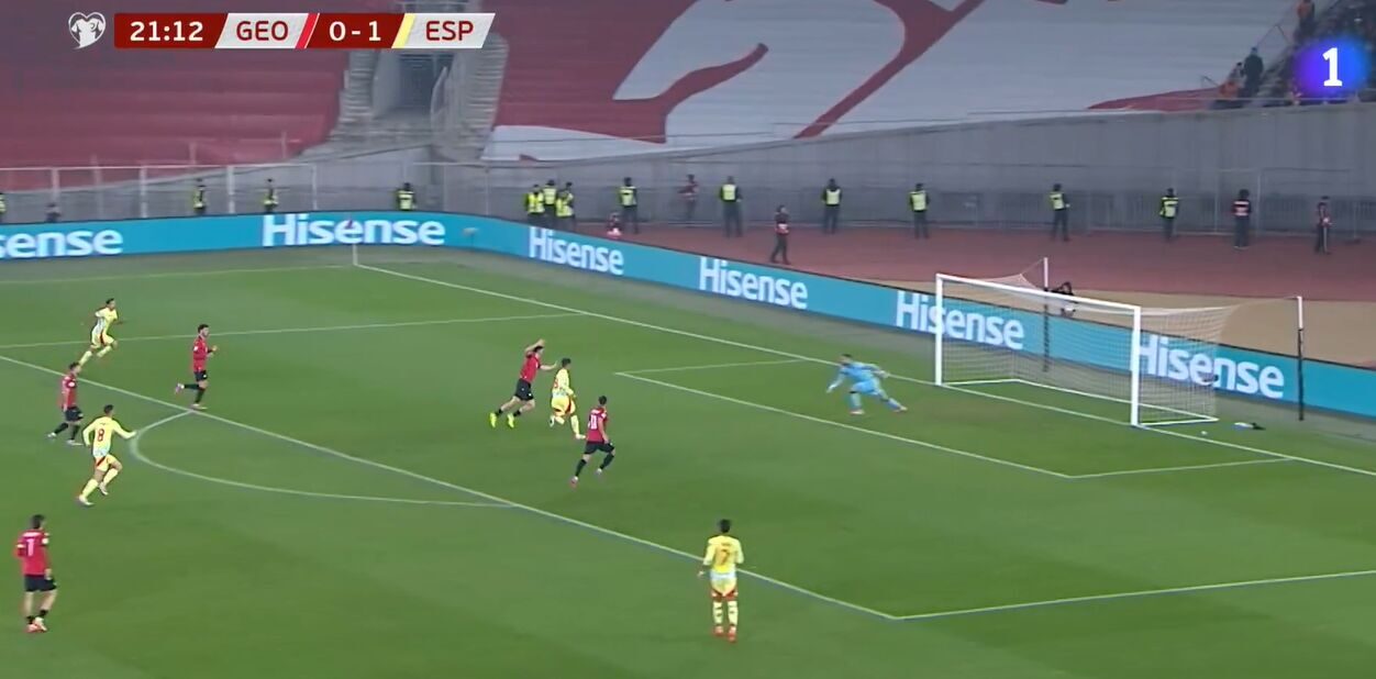 Primera parte de fantasía de la selección española en Georgia que abrió el camino de la goleada que ya nos mete de manera virtual en el Mundial de 2026. Georgia apenas pudo contener el fútbol de España y en los primeros 45 minutos los nuestros ya iban 0-3.