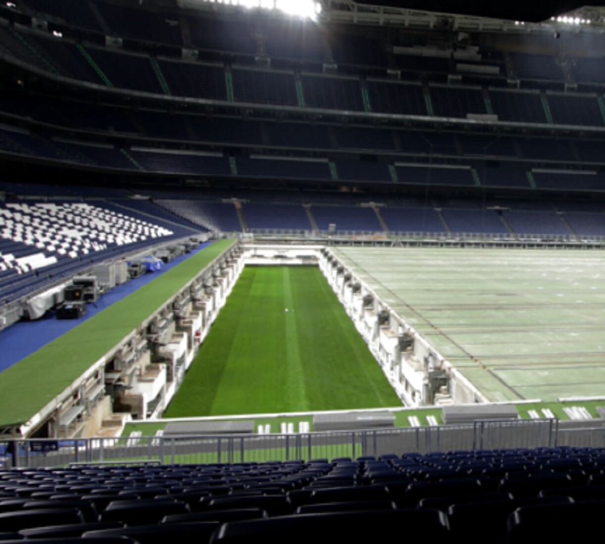 Se puede ver toda la instalación por debajo del césped del Bernabéu que se activa cuando se necesita para cambiar de evento. Se pasa de un partido de fútbol a uno de NFL, pero también a cualquier otro espectáculo o show que quiera el Real Madrid.