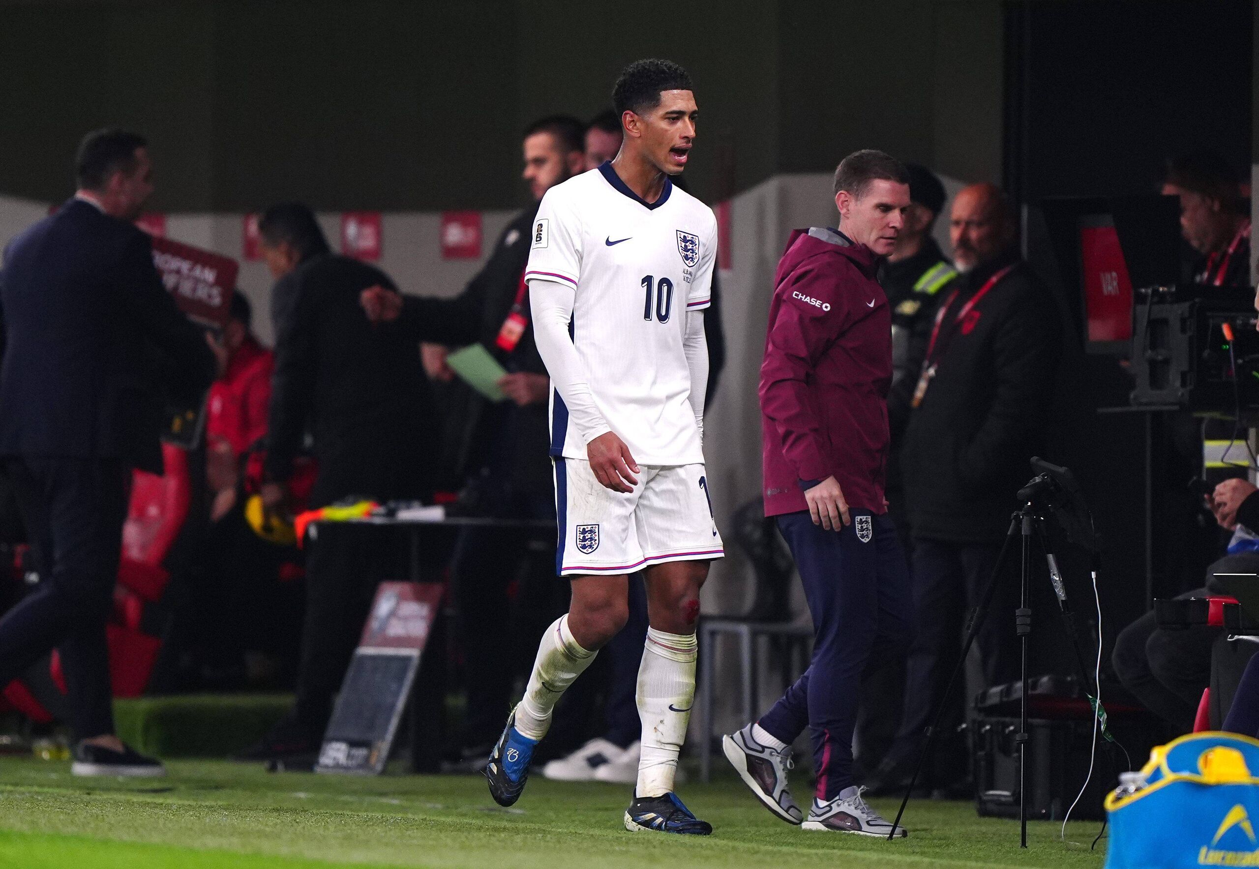 En el encuentro de clasificación para el Mundial 2026 frente a Albania, Bellingham salió del campo en el minuto 84 en un partido que Inglaterra ya iba ganando y donde no se jugaban nada, pero no le sentó nada bien. Jude no ocultó su malestar por la decisión de Thomas Tuchel de mandarle a vestuarios antes de tiempo. En la rueda de prensa posterior, el técnico alemán no eludió la polémica surgida por el cambio y aseguró que vio que "Jude Bellingham no estaba contento cuando salió del campo. No quiero darle más importancia, pero mantengo lo que dije: el comportamiento es clave y hay que respetar a los compañeros que entran. Las decisiones se toman y, como jugador, tienes que aceptarlas".
