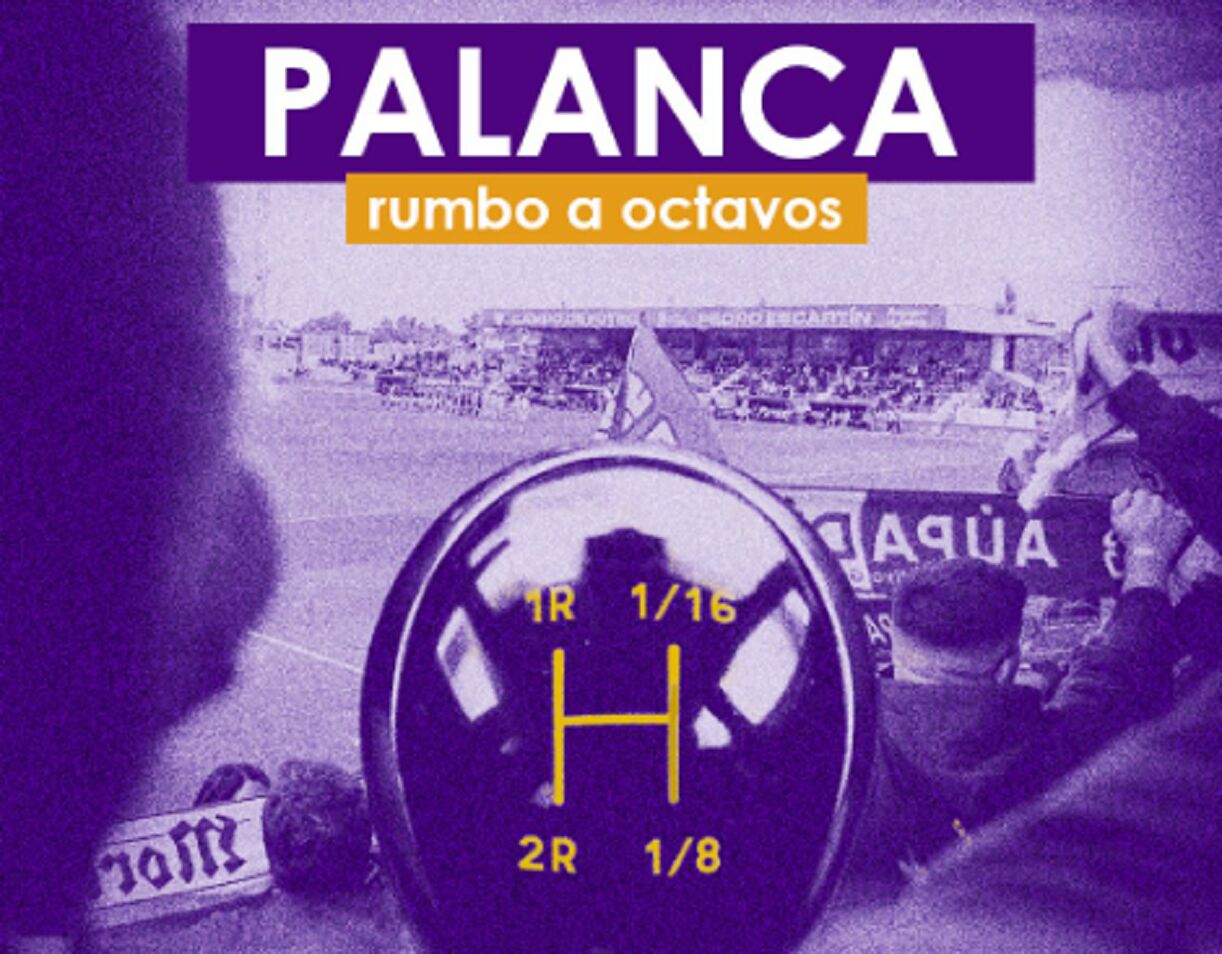 En la imagen se puede ver una palanca cuyas marchas tienen la primera ronda copera, 1/16, segunda ronda y los octavos de final. El cartel solo reza las palabras: "Palanca, rumbo a octavos".