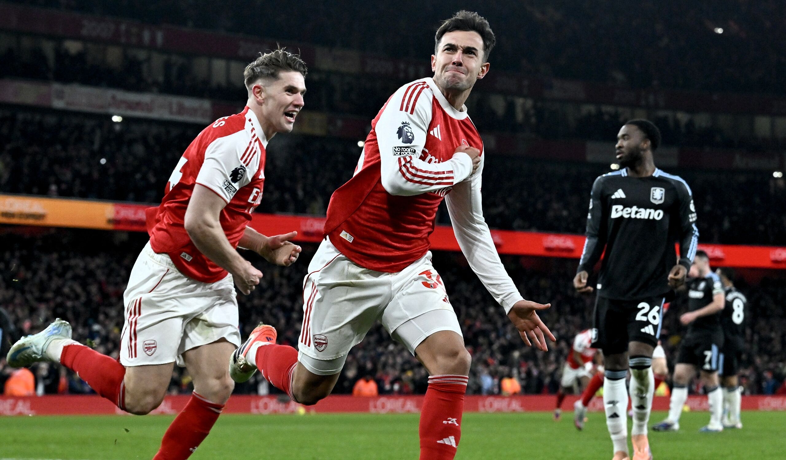 Leandro Trossard marcó el 3-0 en el minuto 69 con un derechazo desde fuera del área y Gabriel Jesus logró el 4-0 (78'') a pase del mismo Trossard. El tanto de Ollie Watkins en el tiempo añadido fue anecdótico; la derrota supuso un golpe de realidad para los 'villanos', que son terceros con 39 puntos en una tabla encabezada por los 'gunners' con 45.