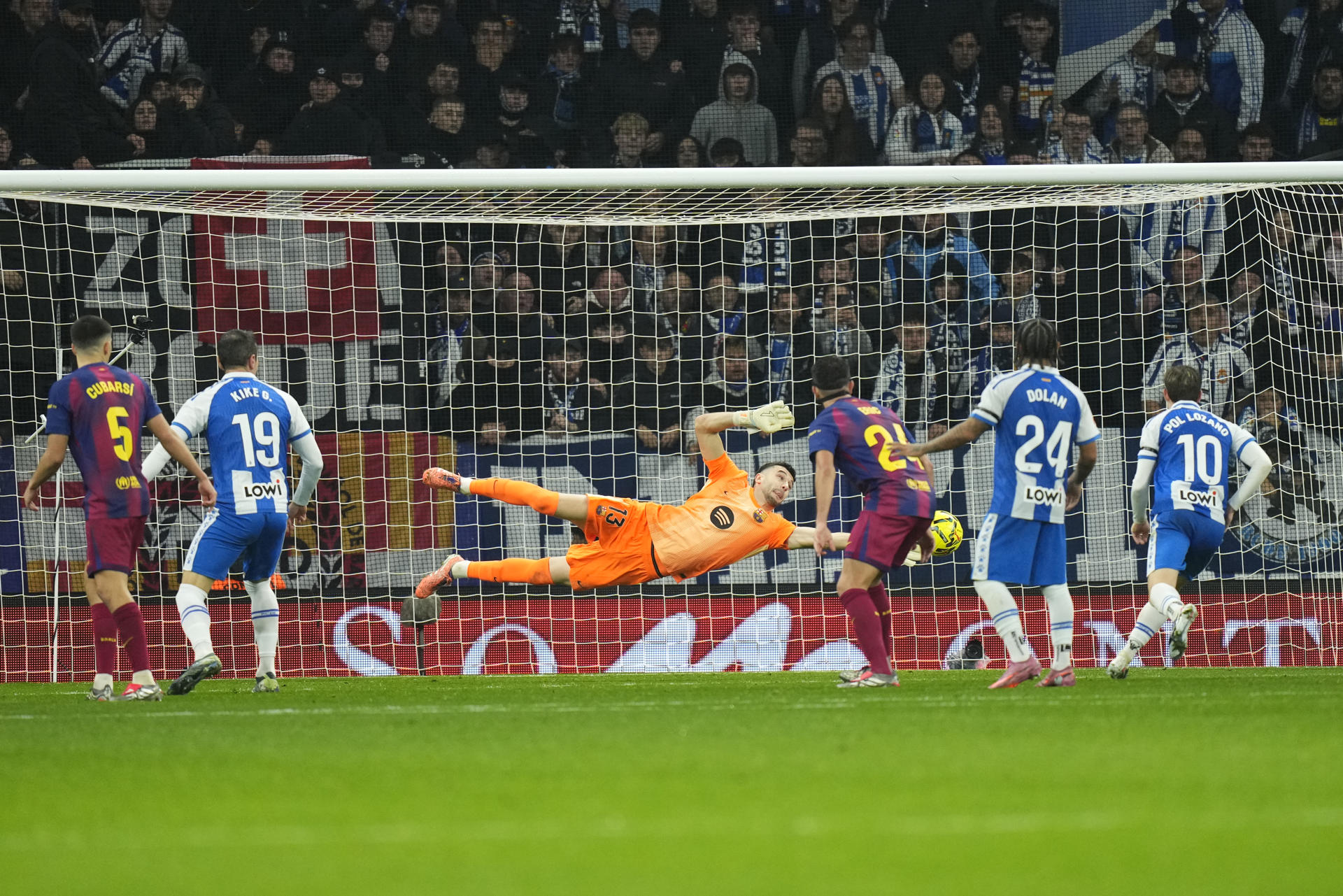 También Dmitrovic quería acaparar los focos, evitando, en el 71, el 0-1 con una estirada estelar ante una ocasión de Eric García. En la siguiente acción, Pedri reclamó penalti al caer en el área blanquiazul, pero el árbitro no lo consideró. El partido estaba abierto en el RCDE Stadium.