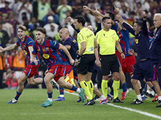 "Ronald nos aporta mucho, el discurso que nos ha dado antes del partido nos ha emocionado a todos", afirmó Pedri. "Pasó un mal momento personal y siempre lo vamos a apoyar. Le pudimos demostrar lo que sentimos por él, el cariño es importantísimo para nosotros y contamos con él", añadió Raphinha. Araujo fue manteado por sus compañeros y Flick aseguró: "Que estuviera en el campo y que levantara el título ya era importante para él y para el equipo".