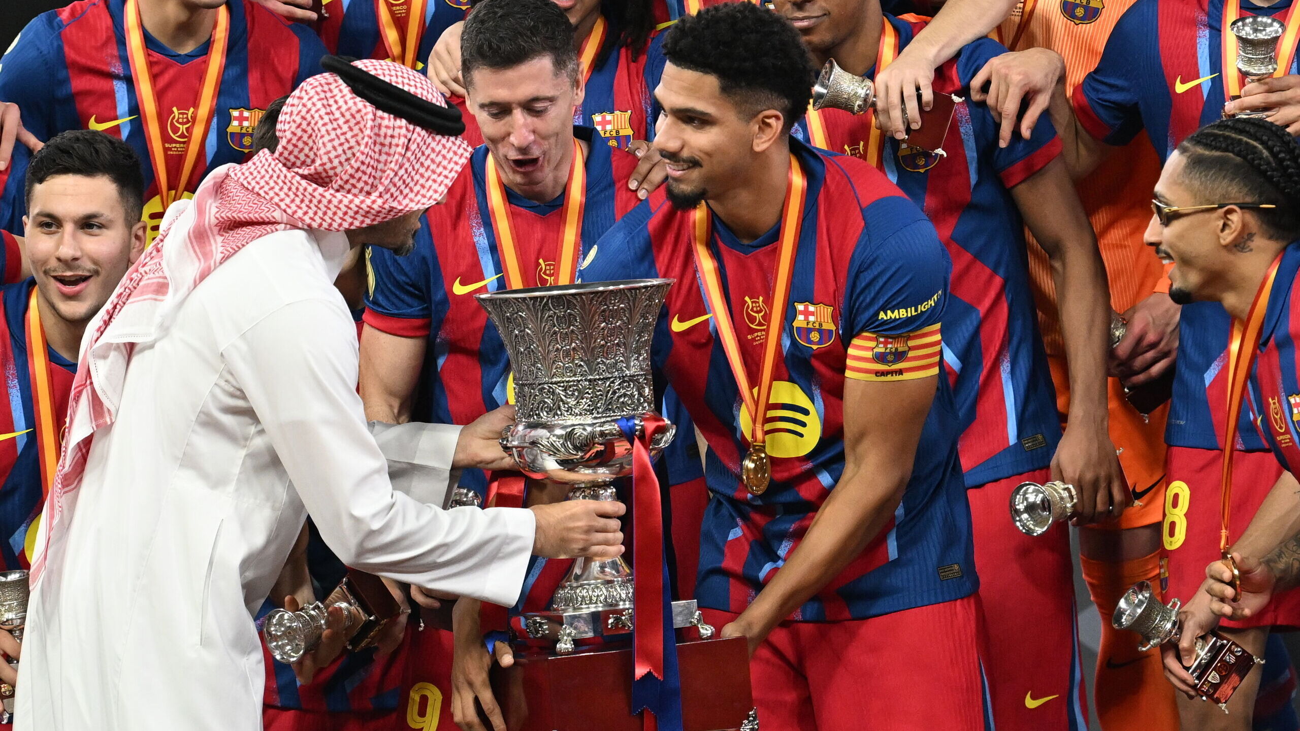 Hansi Flick dio entrada al futbolista para sustituir a Lamine Yamal cuando apenas quedaban segundos para que el FC Barcelona se proclamase campeón y levantara el trofeo. Cuando llegó ese momento, los futbolistas del FC Barcelona tuvieron un bonito gesto hacia su compañero y le entregaron el título para que fuese el defensa quien lo elevara al cielo en el King Abdullah Sports City.