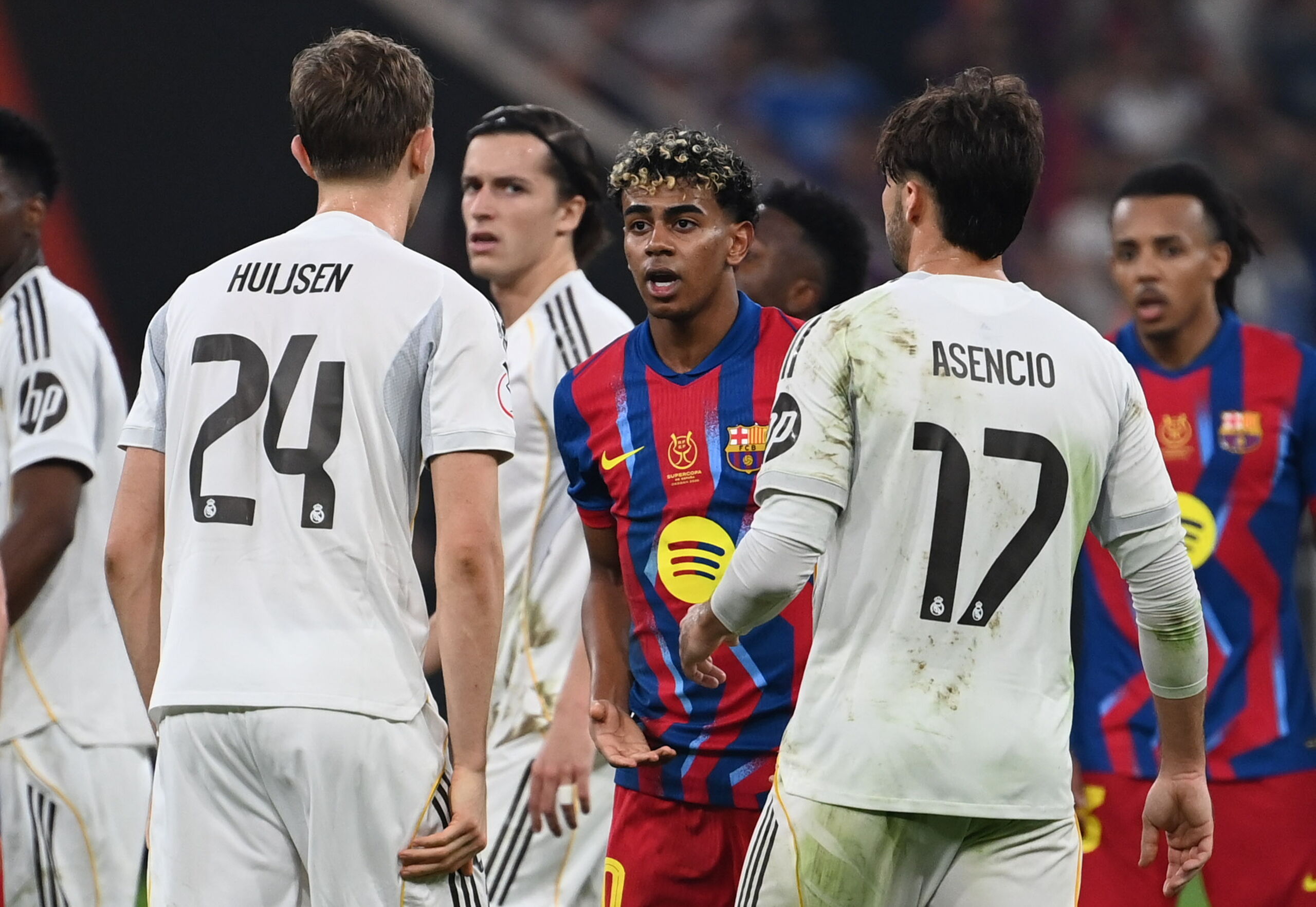 📹 La tensión entre Lamine, Asencio y Huijsen.#DeportePlus #superSupercopa pic.twitter.com/SzZtwi36Y0