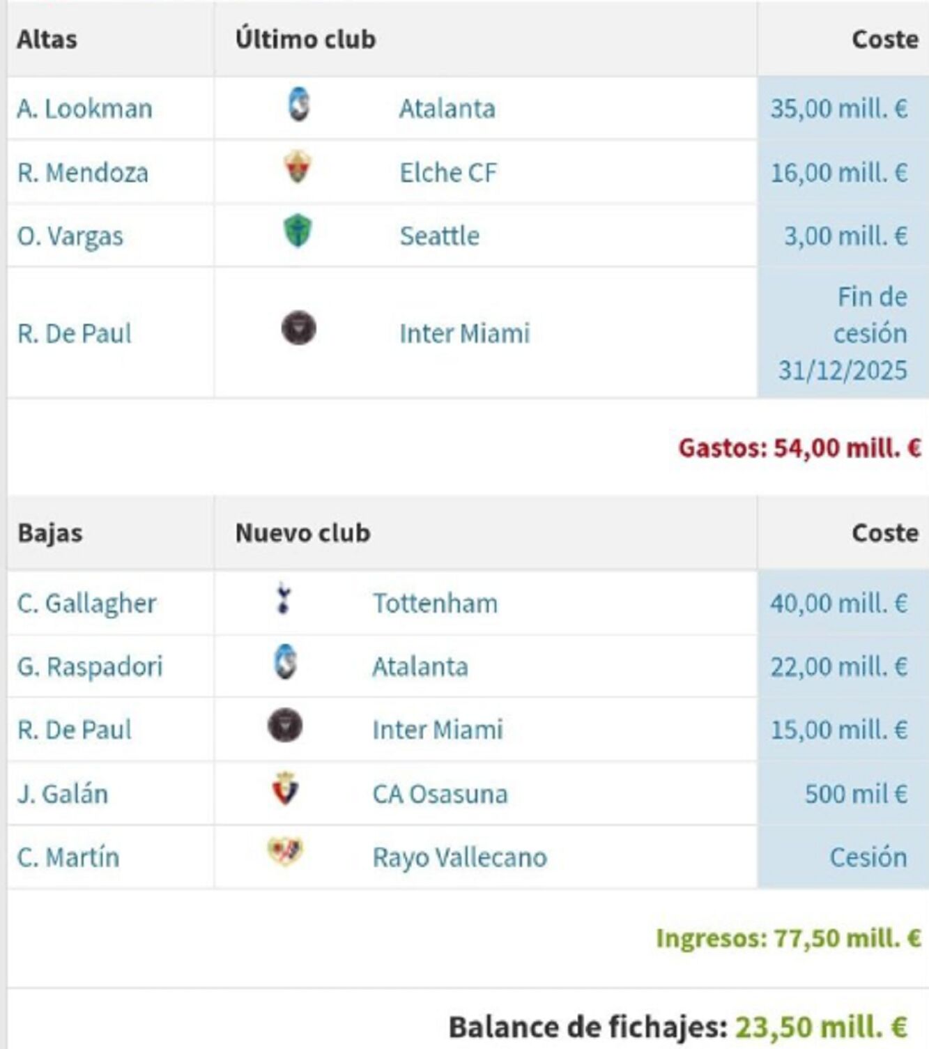 Por otro lado también hubo ventas con los canteranos ya que una de ellas, la de Berterame, ha sumado en torno a cinco millones más a las arcas del club. El Atlético tenía el 30% por ciento de los derechos del jugador y su venta en México ha provocado que al cuadro rojiblanco le llegue este nuevo pellizco.