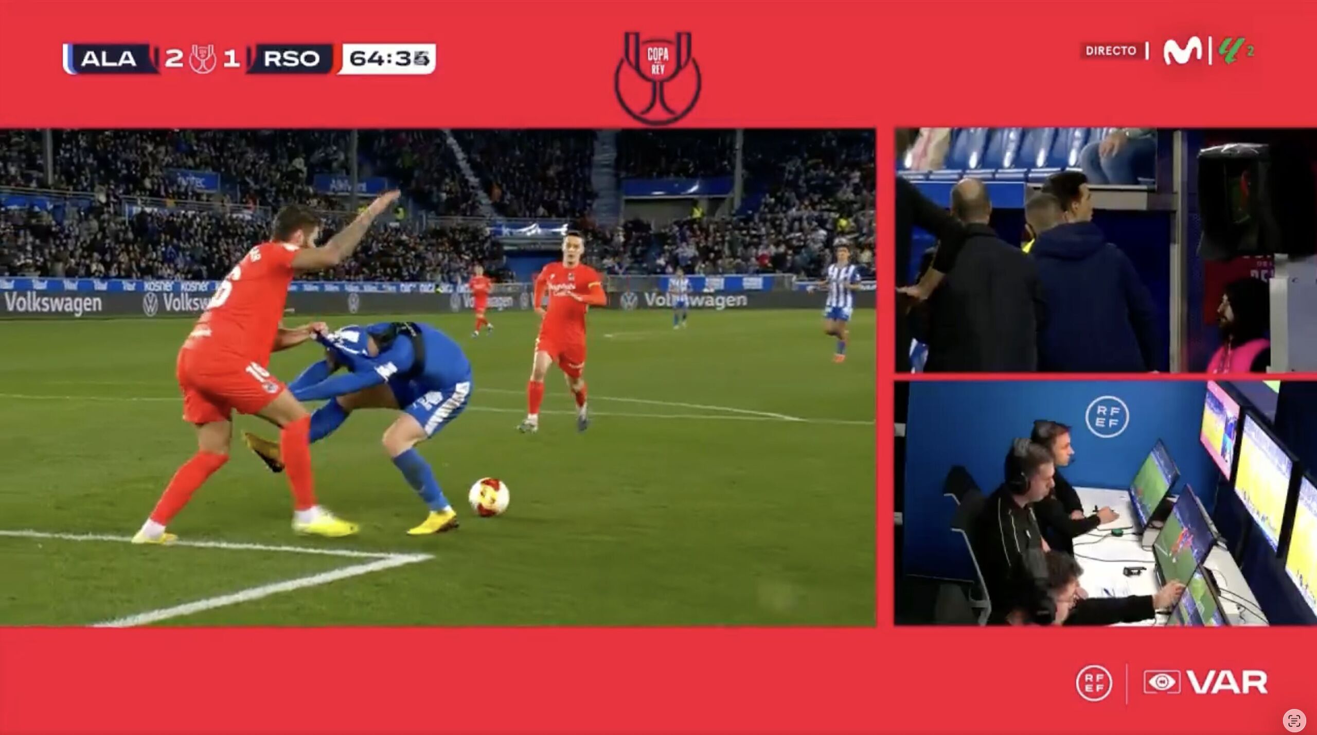Alavés y Real Sociedad se enfrentaron en cuartos de final de la Copa del Rey, con la victoria final del equipo txuri-urdin. El encuentro estaba inclinado a favor del Alavés (2-1) cuando se produjo uno de los momentos más sorprendentes posiblemente de lo que resta de temporada.