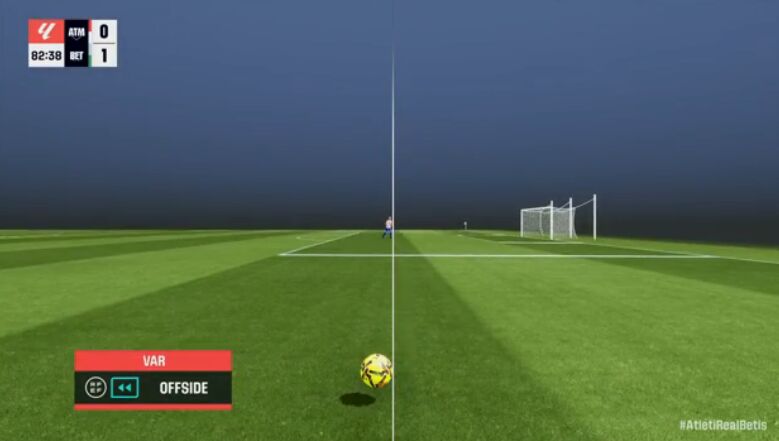 "Correcto, esa es la posición de fuera de juego", explicó visualizando un frame en el que se aprecia la puntera del delantero galo más adelantada. "Vale, pónmela en dinámico", dijo el árbitro. "Vale, Griezmann está en posición de fuera de juego e interfiere claramente en el defensor. Voy a reanudar con fuera de juego", concluye. Por ello, el tanto en propia puerta de Llorente no subió al marcador y los béticos se llevaron los tres puntos.