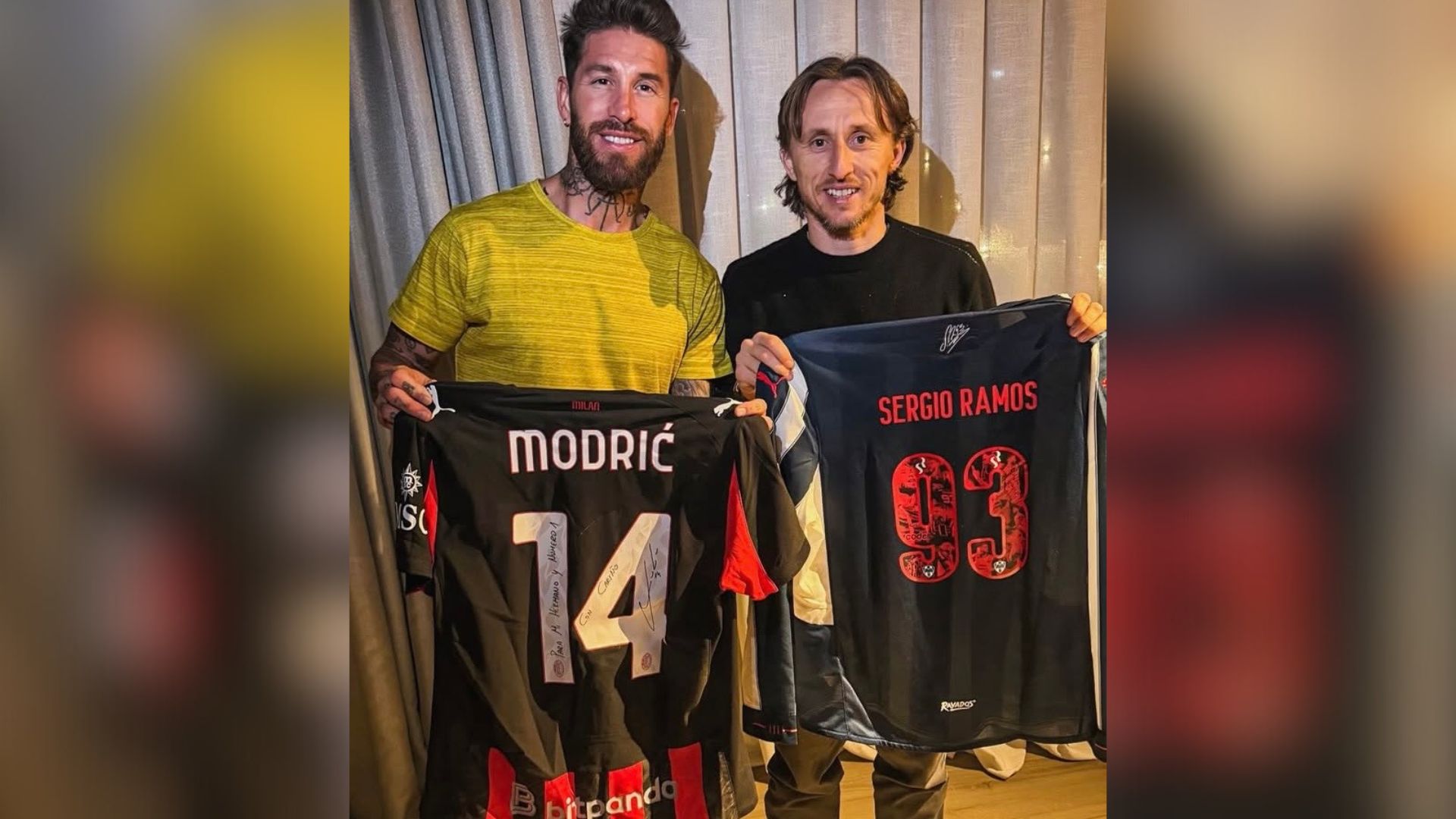 Este fin de semana, Ramos recibió en su casa a Luka: "Siempre es una alegría inmensa verte, mi brother. Por muchos ratos más de los nuestros. Alucinado con mi asado", escribió en el stories. En la instantánea se ve a Ramos posando con una camiseta del AC Milan serigrafiada con el nombre de Modric y el número 14. A su lado, el croata aparece con la camiseta del Rayados con el número 93 de Sergio Ramos. Ambas vestimentas están firmadas.