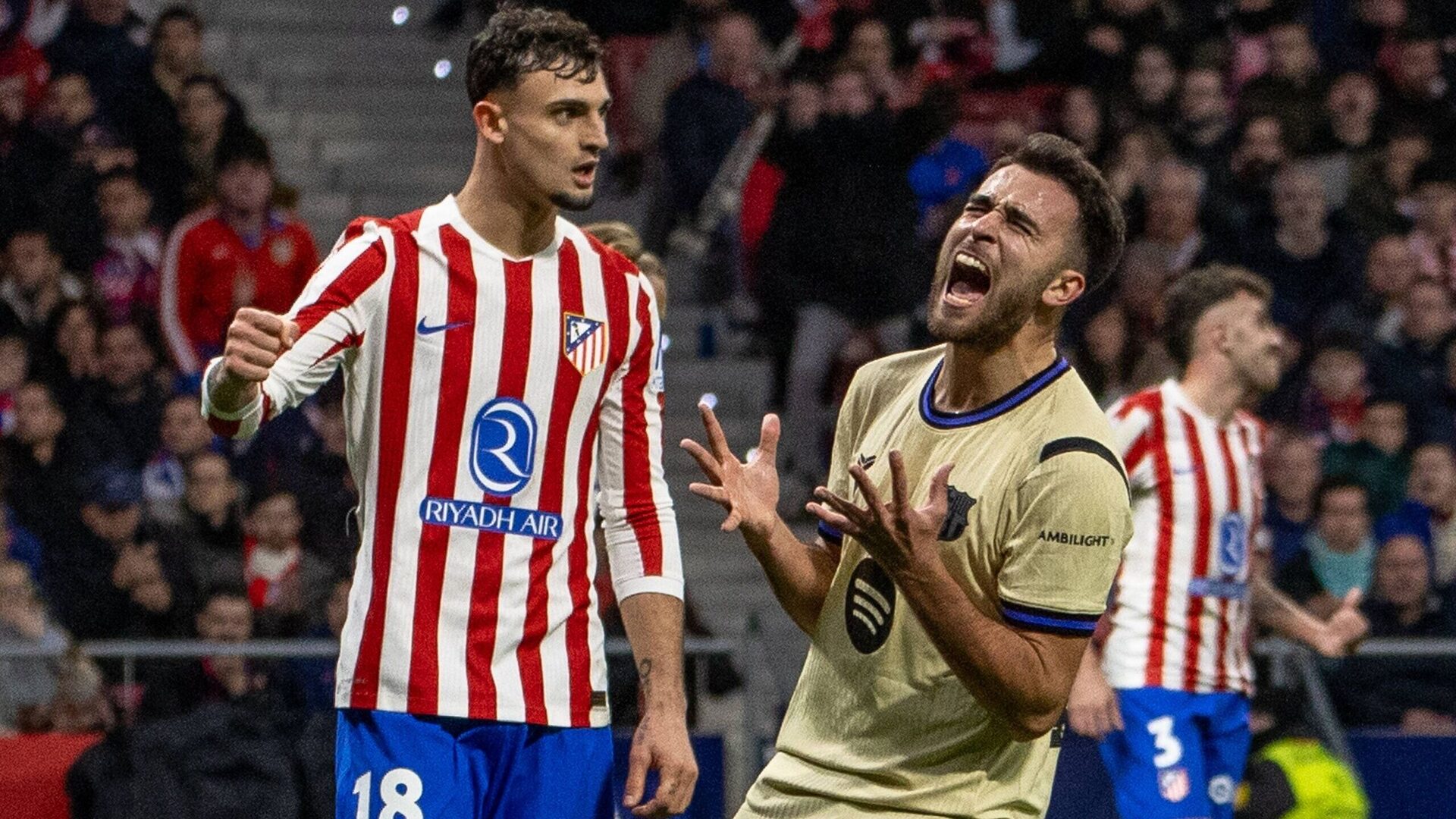 Eric García, quien vio la tarjeta roja en el 85’ por una entrada sobre Baena, habló también sobre el gol anulado en TV3 y se mostró muy crítico: "El fuera de juego me parece una vergüenza, parar el partido durante seis minutos para ver si es fuera de juego o no... Un fuera de juego que no se ve si lo es o no. Ya nos ponemos nosotros las cosas suficientemente complicadas y encima añadimos eso. Sabemos contra lo que jugamos y hemos de seguir", declaró tajante.
