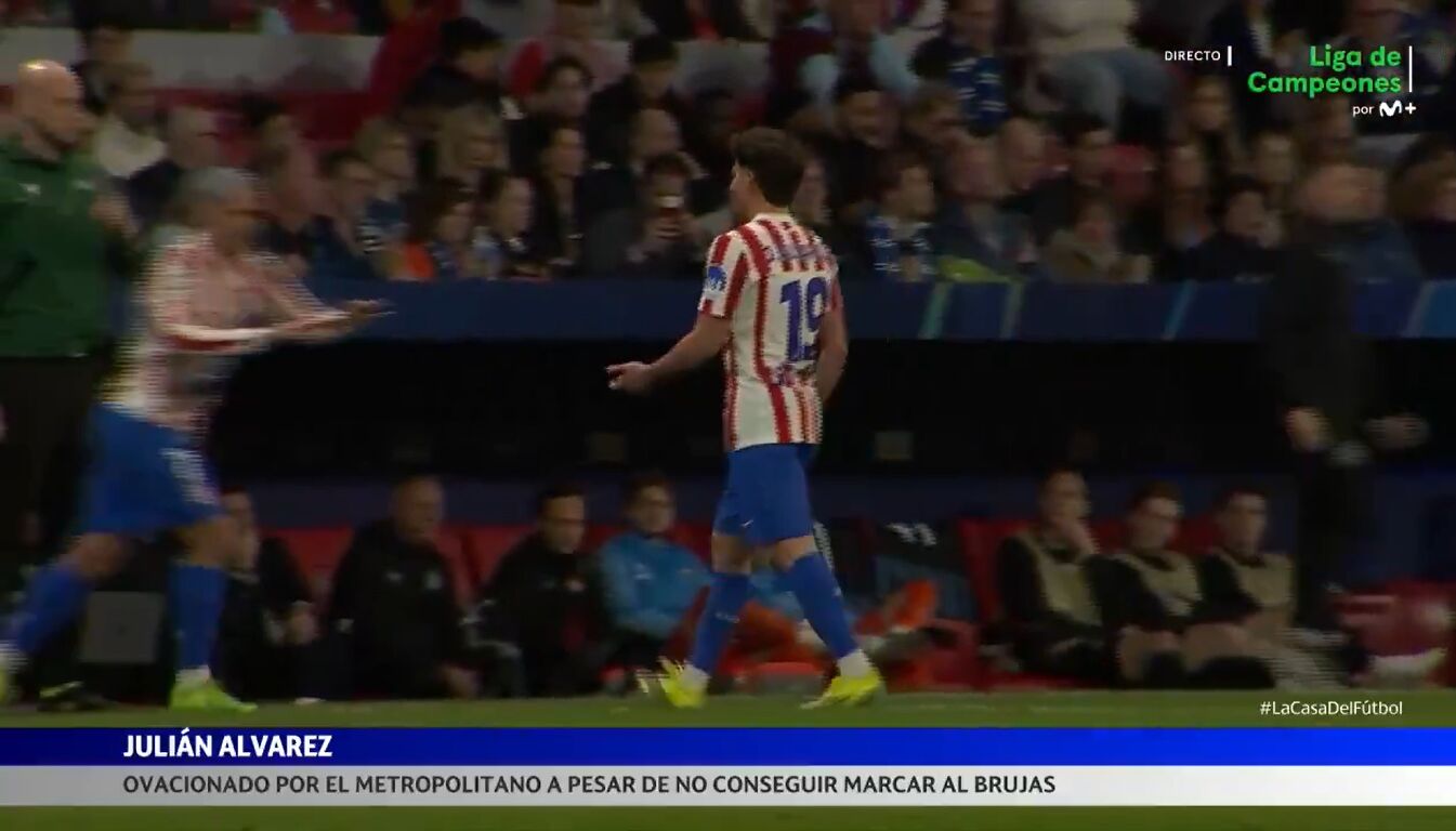 La ovación del Metropolitano a Julián Álvarez. #UCL #LaCasaDelFútbol pic.twitter.com/jA9Ru6xsGg