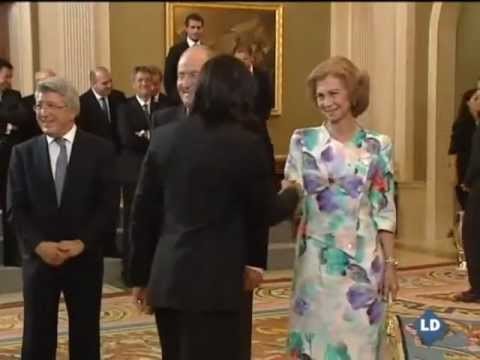 Enrique Cerezo ha explicado que el rey Juan Carlos estaba "encantado" con los cuatro títulos europeos del club en los últimos dos años, ha añadido que ha estado "muy cariñoso" con el equipo durante la recepción celebrada esta tarde en el Palacio de la Zarzuela y ha desvelado que le dijo al colombiano Radamel Falcao que siga metiendo "muchos goles".