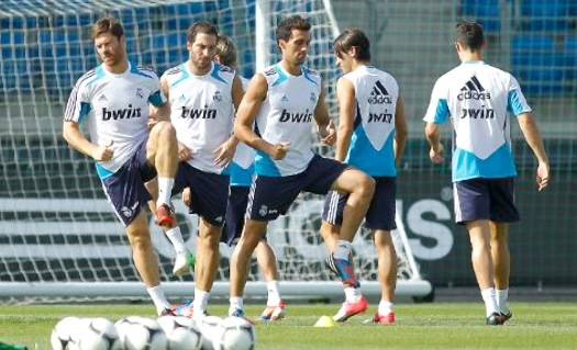 En el primero trabajaron Arbeloa, Pepe, Varane, Marcelo, Khedira, Xabi Alonso, Di María, Cristiano Ronaldo e Higuaín, nueve de los once jugadores titulares ante el Manchester City, quienes realizaron distintos estiramientos que combinaron con carrera continua bajo las órdenes de Rui Faria, ayudante de Mourinho.