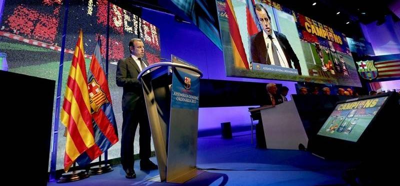 Durante su intervención ante la asamblea de compromisarios del club, Rosell ha recordado que él es "catalán y catalanista" como el Barça. "Estoy orgulloso de su pasado (del club) y seguro que estaremos orgullosos de su futuro. La institución siempre será fiel a su historia y a sus convicciones, siempre defenderemos sus raíces, y siempre defenderemos el derechos de los pueblos a decidir su futuro", ha indicado.