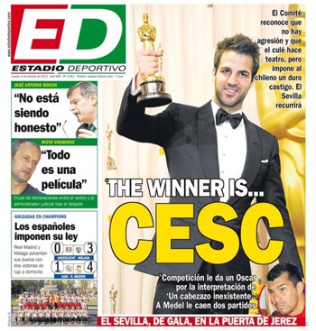 Esta situación ha indignado al fútbol sevillista, y el periódico Estadio Deportivo le ha dedicado la portada al futbolista del Barcelona, recogiendo un Oscar y señalándolo como el mejor actor.