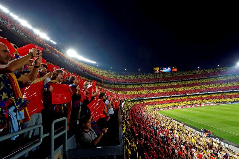 Incidencias: Partido correspondiente a la séptima jornada de la Liga BBVA disputado en el Camp Nou ante 96.589 espectadores. En el palco se encontraban, entre otros, el presidente de la Generalidad, Artur Mas; el alcalde de Barcelona, Xavier Trías; el director de la oficina de la ONU sobre el deporte para el Desarrollo y la Paz, Poul Hansen; y el mítico exjugador de la NBA Magic Johnson. Antes del inicio del partido, el Camp Nou se vistió con un gran mosaico formado por 98.000 cartulinas con la señera catalana y la palabra "Barça" como protagonistas. Miles de espectadores lucieron banderas independentistas en las gradas