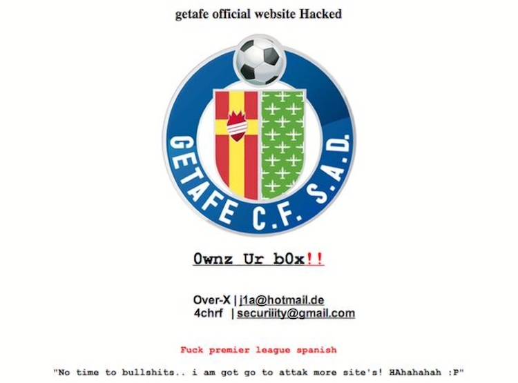 La página web oficial del Getafe ha sido atacada por piratas informáticos que han burlado la seguridad de la entidad madrileña para colocar un mensaje en el que aseguran despreciar a la "Primera División española".