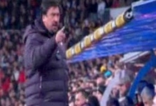 comentarios El segundo entrenador del Atlético increpó al banquillo local poco antes de la media hora del derbi del Bernabéu.