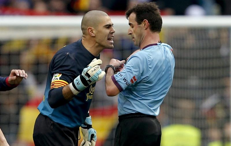 Víctor Valdés se volvió loco al finalizar el encuentro, y terminó expulsado por sus protestas a Pérez Lasa.