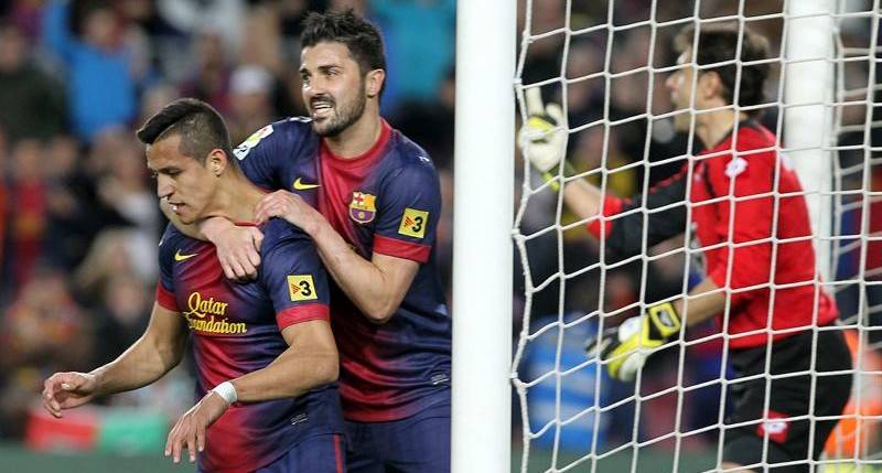 Barcelona, 2: Pinto; Alves, Puyol, Mascherano, Adriano; Song, Thiago (Iniesta, m.67), Cesc (Busquets, m.75); Tello, Villa (Messi, m.61) y Alexis