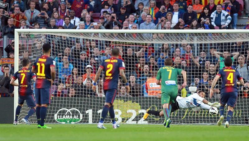 Cuando se cumplía el cuarto de hora, llegó la acción que todos pensaban que podía abrir la lata. Undiano Mallenco señaló penalti sobre Iniesta. El árbitro entendió, de forma muy estricta y para desazón del Levante, que Diop zancadilleaba al manchego. Momento para que Villa sumase un tanto en su cuenta particular y se postularse para el once frente al Bayern, pero Keylor Navas detuvo el lanzamiento y el posterior rechace de Cesc.