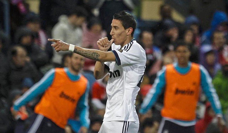 Ángel Di María fue el mejor de un derbi madrileño insulso, el más feo de los últimos años. En la imagen, el Fideo celebra su gol al Atlético de Madrid, con dedicatoria a su hija recién nacida.