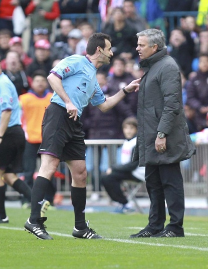 José Mourinho volvió a encontrarse con el árbitro Pérez Lasa, al que recriminó sus decisiones en más de una ocasión.