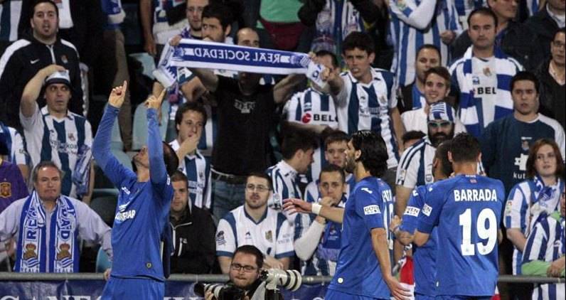 El Getafe se ha impuesto a la Real Sociedad en el Coliseum Alfonso Pérez (2-1), en el partido que ha cerrado la trigésimo cuarta jornada de la Liga BBVA. El equipo azulón suma así tres puntos que le permiten seguir soñando con los puestos europeos, mientras que los vascos desperdician una magnífica oportunidad de amarrar la cuarta plaza de la Liga y ven cómo el Valencia, quinto clasificado, está ahora a sólo dos puntos cuando restan cuatro jornadas para el final.
