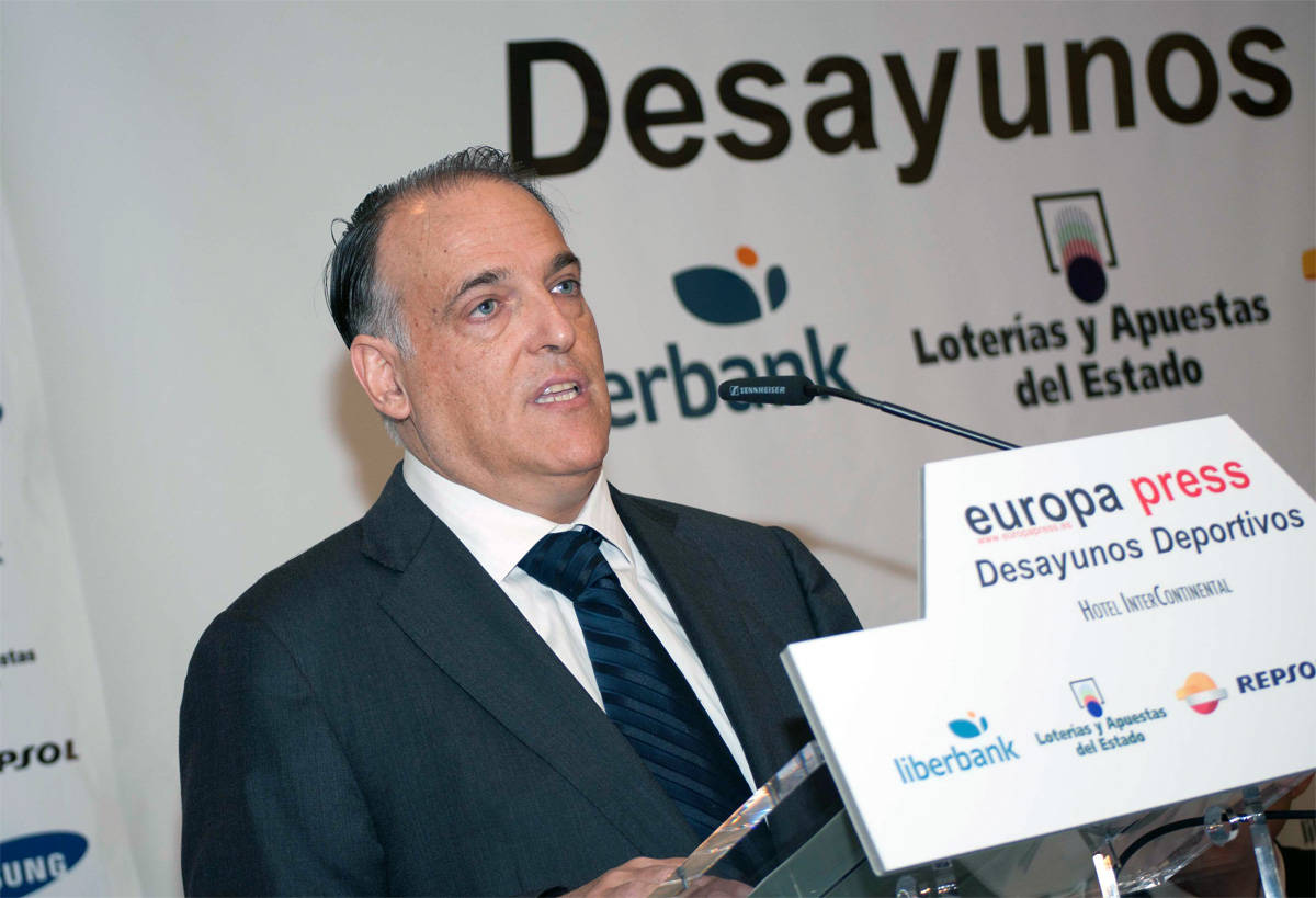El máximo dirigente de la LFP también se muestra partidario del "desdoblamiento de los horarios de los partidos" y reconoce "que el único problema que tenemos es el del lunes", anunciando que el organismo que preside intentará "compensar económicamente a los clubes que desde esta temporada se han visto afectados por jugar los lunes en casa".