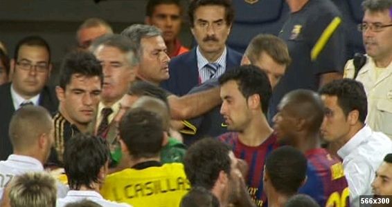 Al final del partido de vuelta de la Supercopa de 2011 entre el Barcelona y el Real Madrid, la tensión entre los dos banquillos estalló después de una dura entrada de Marcelo a Cesc Fábregas. Mourinho aprovechó la tangana que se formó tras la expulsión del brasileño para acercarse al entonces segundo entrenador azulgrana y meterle un dedo en el ojo, a lo que Tito respondió con una colleja. En la rueda de prensa posterior al partido, el técnico portugués aseguró que no sabía quién era Tito.