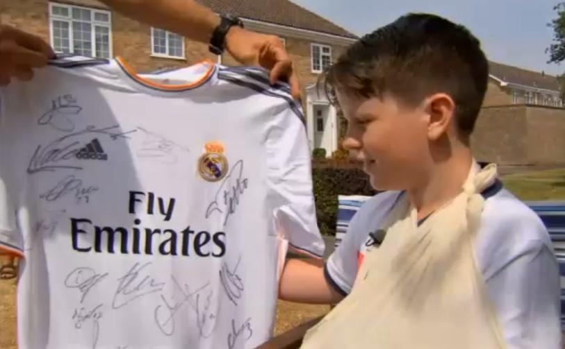 En cuanto el Real Madrid supo de la lesión del niño, que fue trasladado al hospital, le envió una camiseta firmada por todos los jugadores y el propio Cristiano Ronaldo le invitó a ver esta temporada un partido en el Santiago Bernabéu.