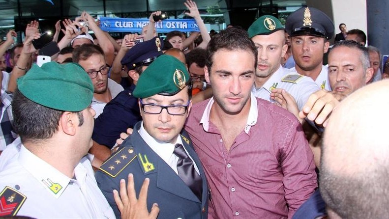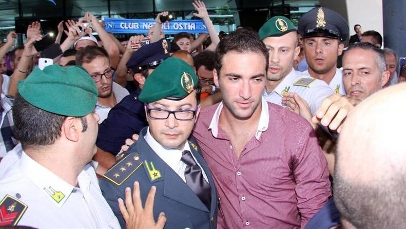 Higuaín fue recibido en el aeródromo por medio centenar de aficionados del Nápoles, que lo aclamaron a su llegada, ante lo que el jugador solo acertó a decir en italiano que se encontraba "feliz, muy feliz" por esta nueva etapa que empieza ahora para él.