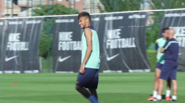 La perla brasileña del FC Barcelona se ha ejercitado por primera vez con sus nuevos compañeros. Además ha sido la primera vez que Tata Martino ha dirigido a todos sus efectivos.
