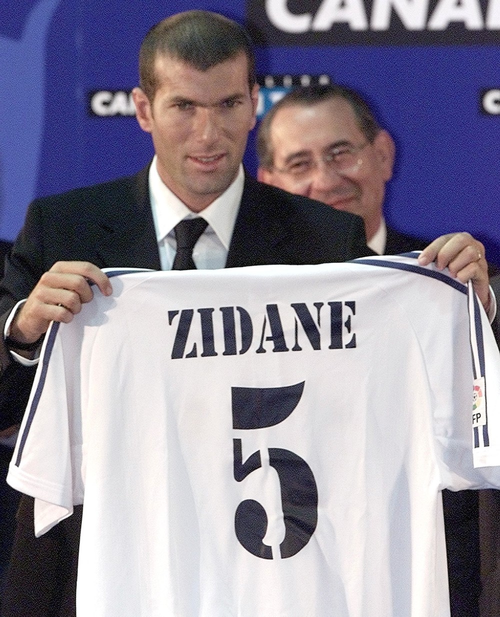 En 2001, el Real Madrid de Florentino Pérez fichó a Zinedine Zidane a cambio de 73,5 millones de euros. Con el equipo blanco, el francés ganó 1 Champions, 1 Liga y 2 Supercopas de España. Como jugador del Madrid, Zidane ha marcado 50 goles, incluido el gol de la Novena que le consagró como una leyenda del madridismo.