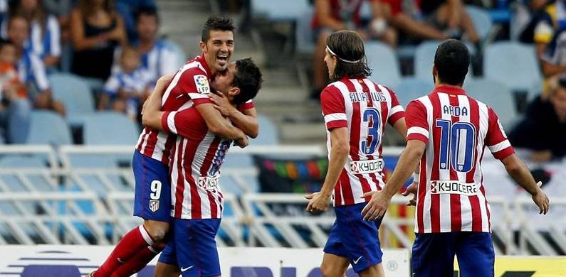 Villa fue un tormento en la primera mitad para la Real, imposible de detener para los centrales blanquiazules, que volvieron a sufrir para frenar otra internada suya en los mejores minutos atléticos, aunque le faltó el acierto en los últimos metros. No perdonaría Villa en el minuto 26, cuando inició un jugada en la que contó con la colaboración de la defensa de la Real con un deficiente rechace, lo que permitió que el balón volviera a queda en sus botas y con una vaselina suave evitar la salida de Bravo para marcar el 0-1.