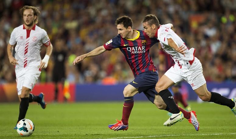 Pero comencemos por el principio. La novedad en el once de Martino estuvo en la inclusión de Tello en el once inicial, con la pareja Neymar – Messi en el ataque. Muy bien el brasileño, un auténtico incordio para la zaga del Sevilla, mientras que el argentino pasó desapercibido a excepción de su gol. El Sevilla no sabía cómo frenar a Neymar, y si no, que se lo pregunten a Mbia, que pudo ver la segunda amarilla por el fuerte empujón que le propinó.