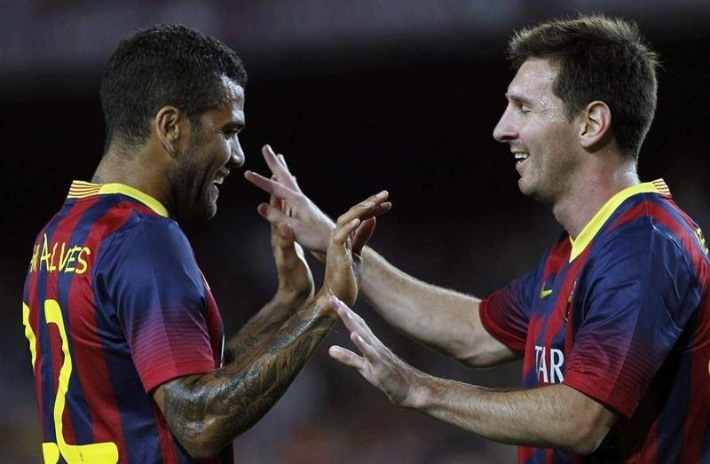 Barcelona: Valdés; Alves, Mascherano, Piqué, Adriano; Xavi, Busquets, Iniesta; Pedro, Messi y Neymar.