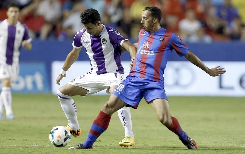 En los primeros compases del partido el Valladolid se mostró más concentrado. Mandaba en el centro del campo ante un Levante al que le costaba generar juego. De hecho, y tras varias aproximaciones del conjunto visitante al área local, el Levante no trenzó una buena jugada de ataque hasta el minuto doce. Aunque el equipo de Joaquín Caparrós empezó a mover el balón con más criterio, esa mejoría no se tradujo en peligro para la meta de Mariño, ya que el Valladolid de Juan Ignacio Martínez se mostraba muy ordenado en labores defensivas.