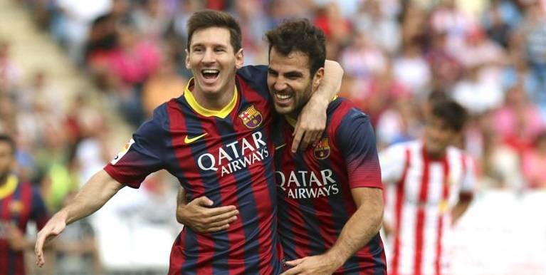 El Almería juntó líneas, se agrupó y esperó en su campo el inicio de la jugada de los visitantes. Y el Barça no terminó de encontrarse cómodo en un partido sin espacios, asfixiado por la falta de ideas. Xavi y Neymar se habían quedado en el banquillo y Cesc e Iniesta no terminaban de cuajar junto a Busquets en el centro del campo. El almería trataba de robar y salir en velocidad por las bandas con Aleix Vidal y Suso. Pero entonces apareció Messi para desatascar el partido.