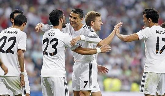 Real Madrid: Diego López; Arbeloa, Pepe, Sergio Ramos, Marcelo; Khedira, Modric; Di María, Isco, Cristiano Ronaldo; y Benzema o Morata