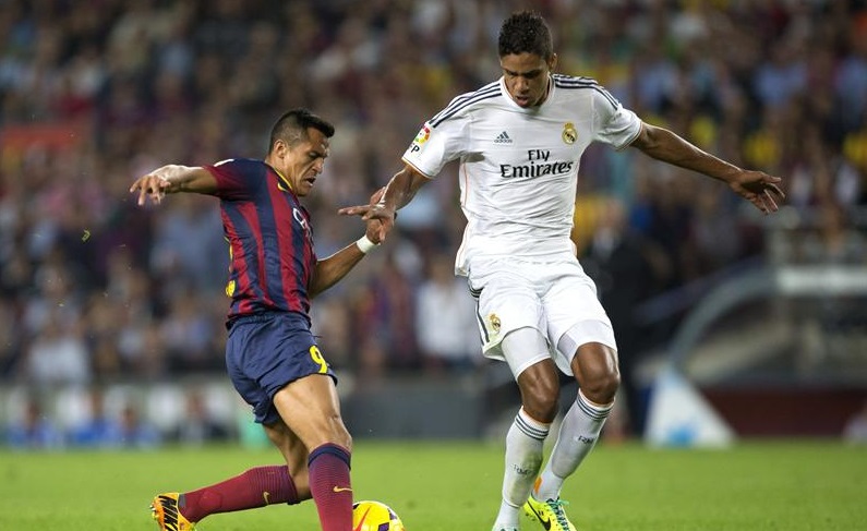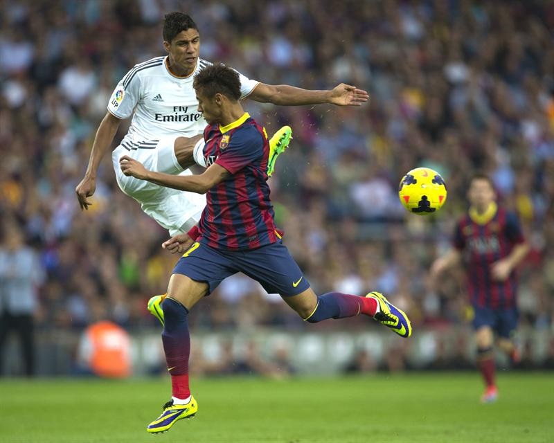 El francés Varane volvió al centro de la defensa madridista junto a Pepe. En la imagen corta un pase a Neymar.