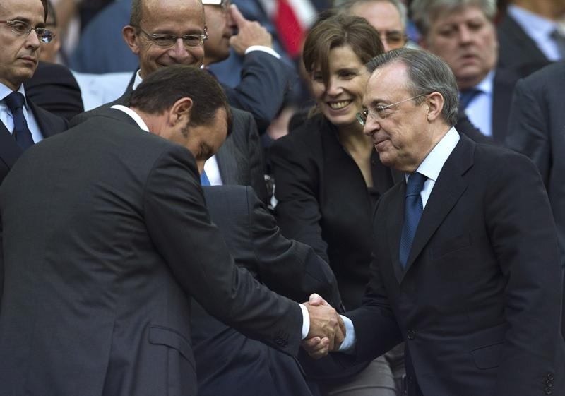Sandro Rosell y Florentino Pérez mantuvieron un ambiente cordial entre los dos clubes en el palco del Camp Nou.