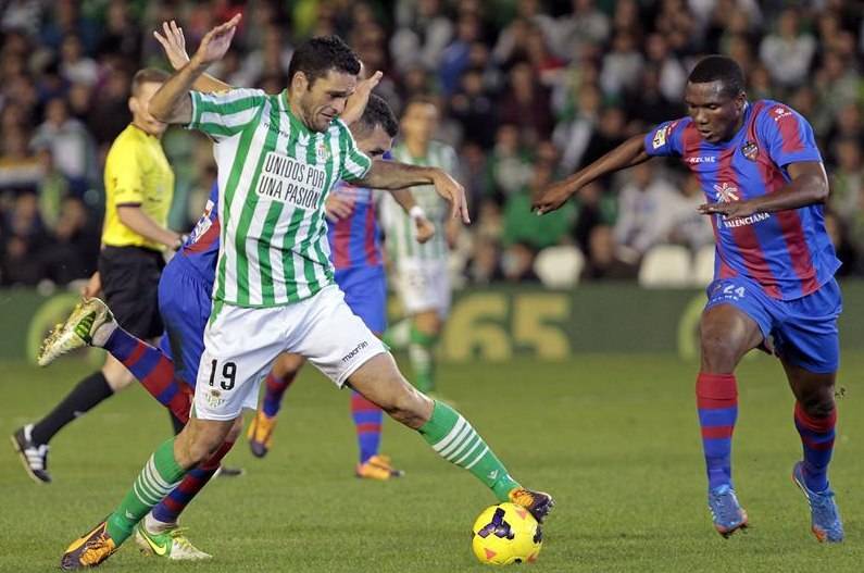 La expulsión del lateral Chica -por doble amarilla- no afectó demasiado al Betis, que sacó fuerzas de flaqueza para suplir la inferioridad. Incluso dominó más, pero sin ideas claras ante un Levante con el sello (juego aguerrido y peleando cada palmo de terreno) de Joaquín Caparrós.