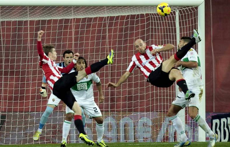 Dos minutos después, el Elche pudo poner el 0-2 con un precioso disparo desde el vértice derecho del área de Fidel, con la izquierda y el exterior del pie, que se estrelló en la cruceta izquierda de la meta local. Se fue reponiendo el Athletic, pero no para volcarse hacia el área de Manu Herrera, sino para evitar nuevas andanadas de un rival muy cómodo en su juego, confiado en su pétrea defensa, y provocar el caos al otro lado del campo a cada balón perdido rojiblanco.
