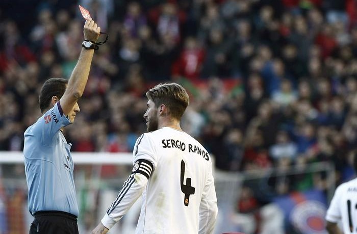 Ramos fue expulsado en Pamplona en el partido ante el Osasuna por doble amonestación, la primera cartulina bastante cuestionable. El de Camas es el jugador del Real Madrid con más expulsiones, 18 entre Copa, Liga y Champions. Supera ampliamente a Fernando Hierro, que se fue a los vestuarios dejando a su equipo en minoría 14 veces.