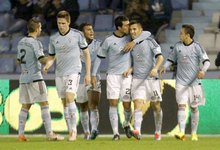 Giovani (d) celebra con sus compañeros su primer gol a la Real Sociedad. | EFE